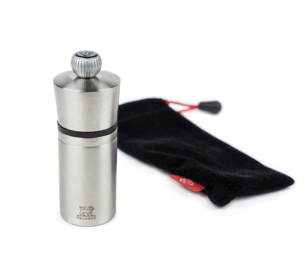 El molinillo de bolsillo POCKET 10 cm, fabricado en acero inoxidable compacto, está pensado para los amantes de la pimienta. Fácil de transportar. Incluye funda protectora de fieltro negro.